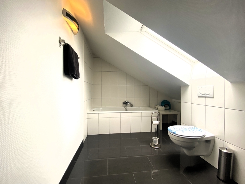 Über eine äußere Stahltreppe gelangen Sie zunächst auf die großzügige Dachterrasse, dann hinein in die offen gestaltete Etage, die erst im Jahr 2009 neu ausgebaut wurde.
