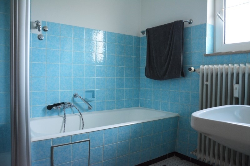 Das Badezimmer mit Tageslicht ist mit einer Badewanne und einer Dusche ausgestattet. Das separate WC grenzt direkt an das Badezimmer an.