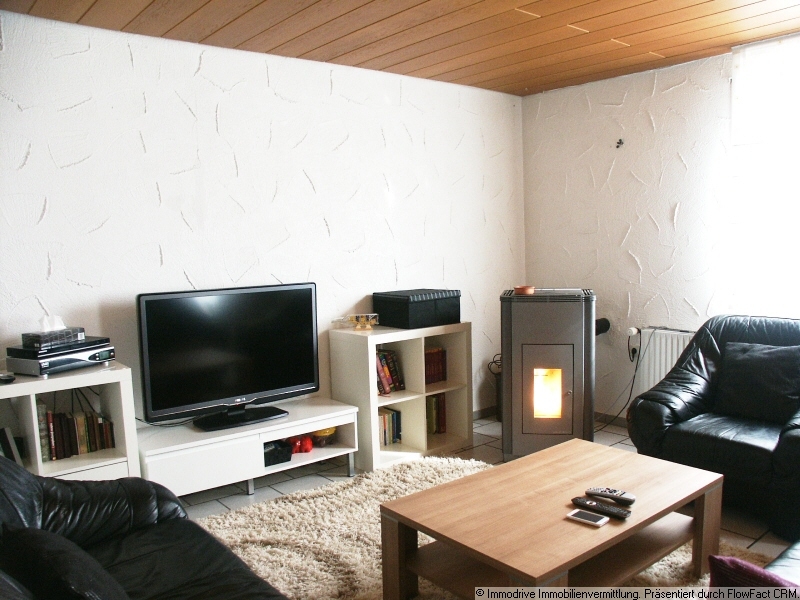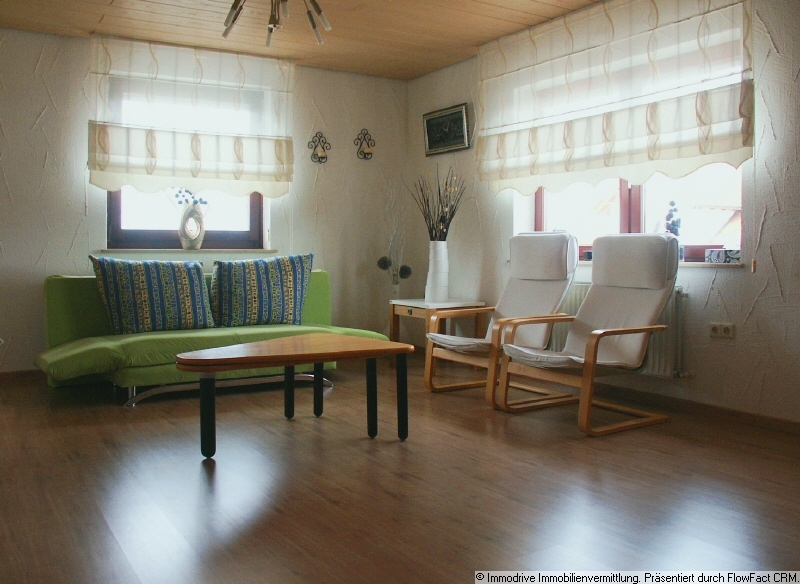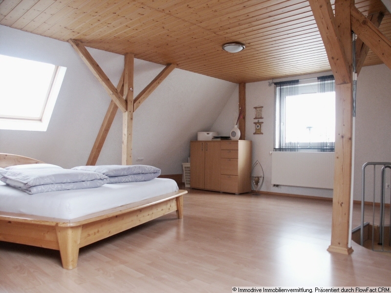 Vom Wohnzimmer aus haben Sie Zugang zur außergewöhlich großen Sonnenterasse,auf der Sie den Sommer genießen dürfen. Außerdem besteht die Möglichkeit in diesem Raum einen Kaminofen aufzustellen. Über eine kleine Wendeltreppe gelangen Sie in die nächste Etage, ein offen gestalteter Bereich mit Holzbalken unterstreicht die charmante Athmosphäre.