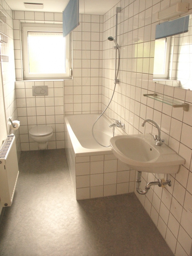 - Bad gefliest, mit Duschwanne, Waschbecken und WC
