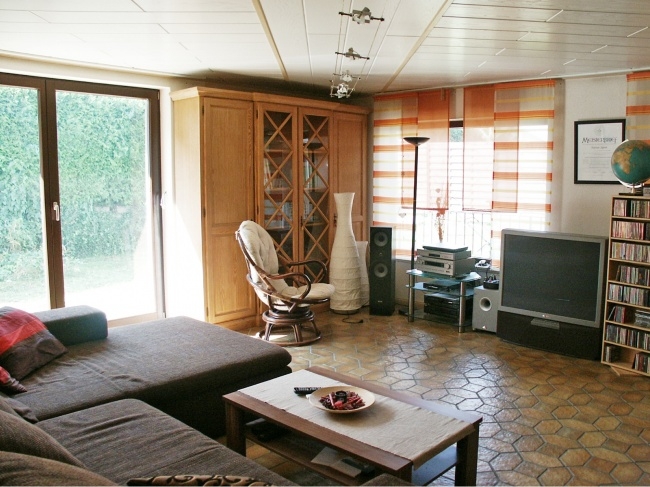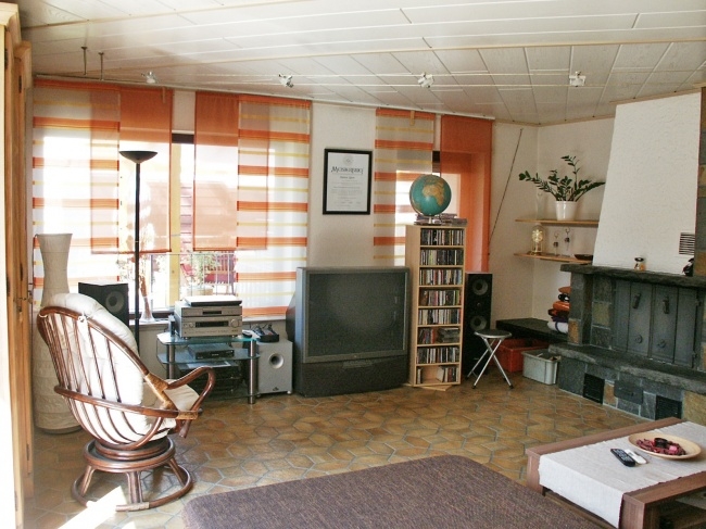 Auf einer Ebene finden Sie eine großzügige Küche mit Esszimmer. Der Kaminofen im großen Wohnraum sorgt für gemütliche Winterabende. Ein geräumiges Schlafzimmer mit Ausgang zum Garten, und 2 weitere Räume die als Büro oder Schlafzimmer genutzt werden können. Das sehr gut ausgestattete Badezimmer mit Dusche, Bidet, WC, Waschbecken und Whirlpool - zum Verwöhnen.